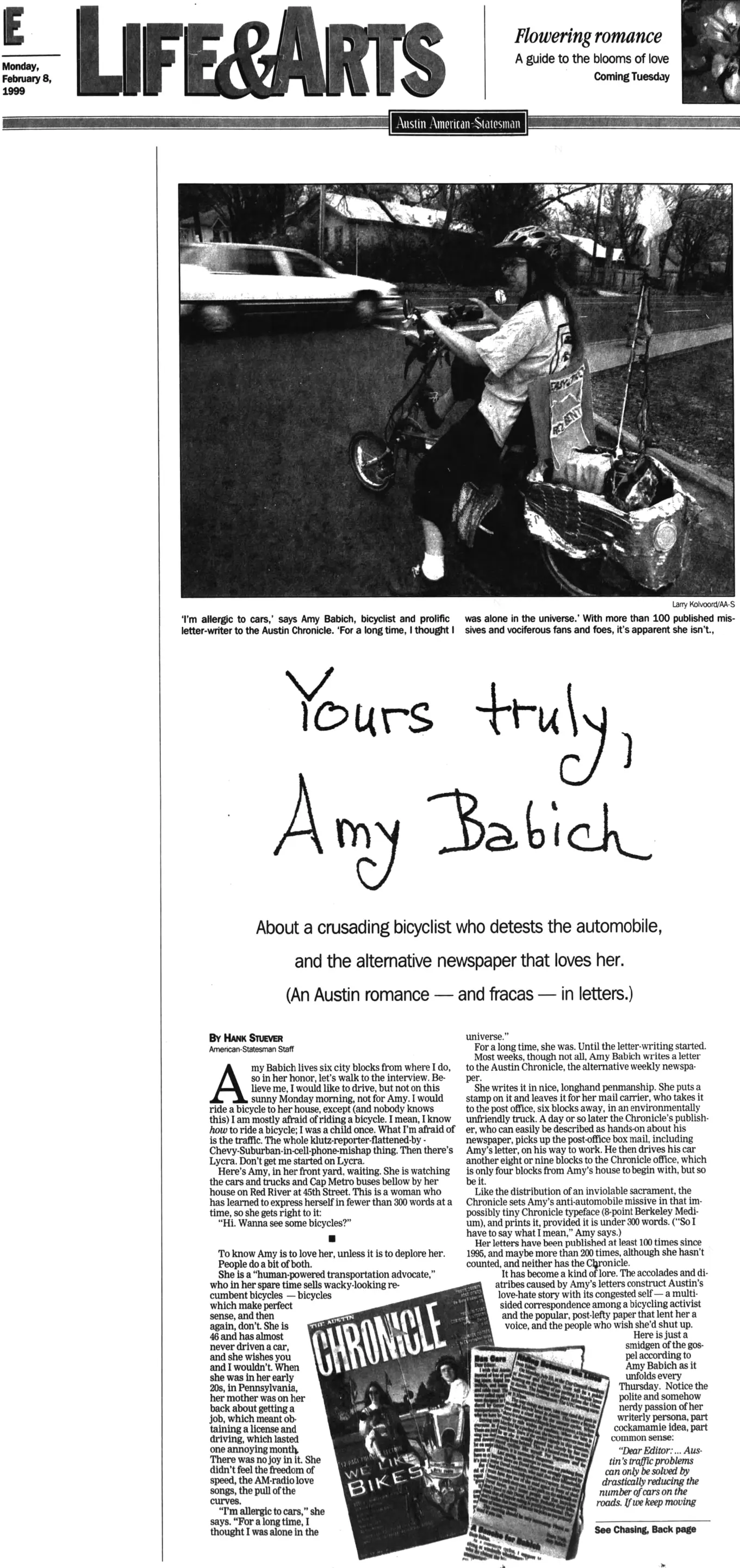 Amy Babich is well-known for her frequent letters on transportation issues appearing